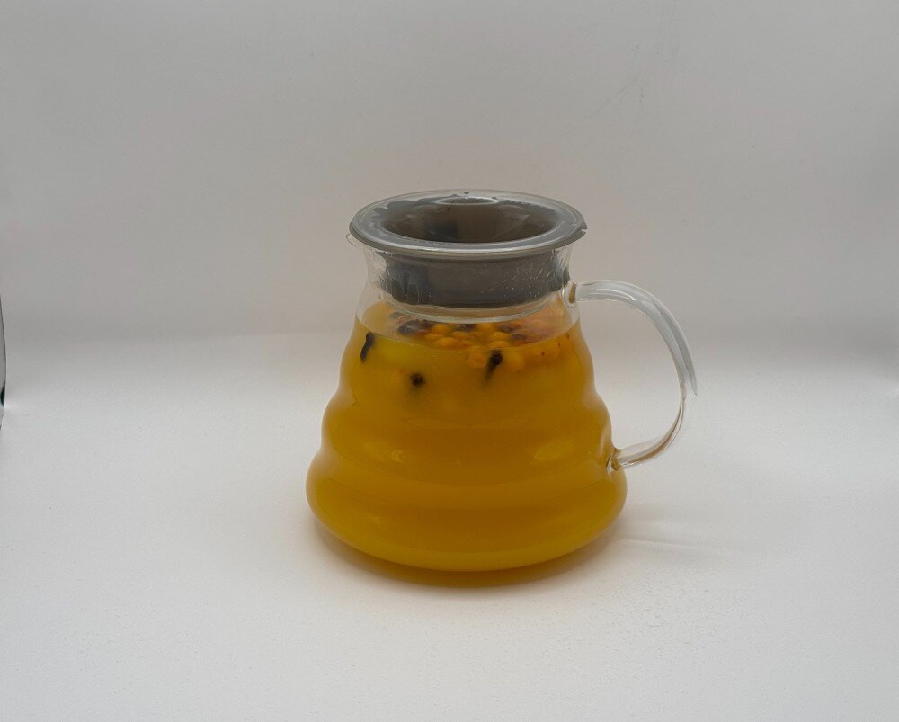 Яркий и согревающий витаминный напиток, созданный для моментов, когда нужно укрепить силы: насыщенная облепиховая основа с пюре из спелого манго, тёплой остротой имбиря и пряной глубиной гвоздики.