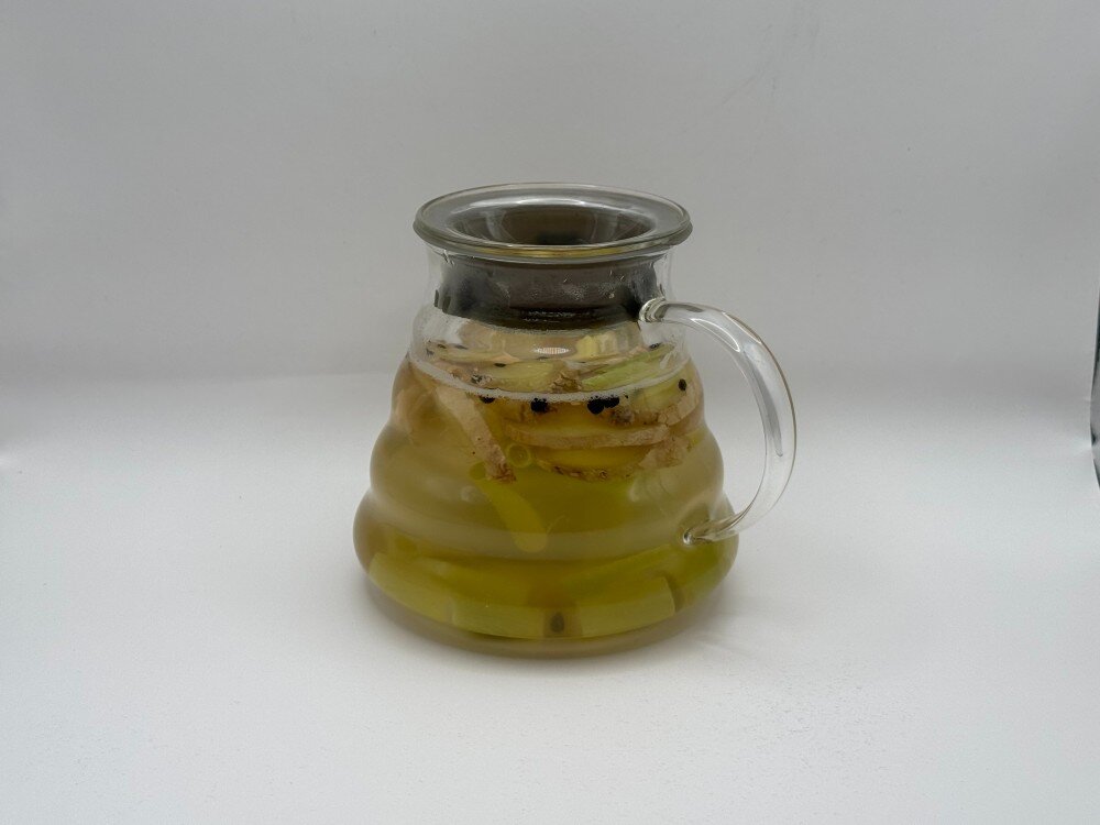 Согревающий и тонизирующий напиток с восточным характером, созданный для моментов, когда нужно восстановить силы и настроение: сочетание свежего имбиря с яркими специями, лёгким цитрусовым акцентом лемонграсса и натуральным мёдом. Жгучая пряностью имбиря, ароматы трав и мягкая сладость мёда, которая не перебивает, а лишь подчёркивает глубину вкуса. Идеально для холодного сезона, для восстановления после долгого дня или для тех, кто ценит в напитках пользу и насыщенность